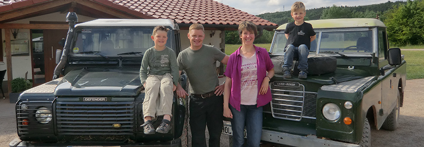Jeroen und Linda Jansen mit Max und Floris. In 2002 haben wir unseren ersten Geländewagen, den Landrover Defender, gekauft. Eigentlich für die Arbeit, da Jeroen immer mit schweren Anhängern fahren musste. Unser Auto war drei Wochen alt, als wir mit dem holländischen Landrover Club, zum ersten Mal in Belgien im Gelände waren. Ein großes Erlebnis für uns. Daraufhin folgten weitere Ausflüge zu verschiedenen Offroadparks in Belgien, Frankreich und England. Es entstand die Idee, selbst einen Offroadpark zu betreiben. Nach einer langen Suche haben wir im Januar 2005 das Gelände in Stadtoldendorf gefunden. Dank der Gemeinde Stadtoldendorf und dem Landkreis Holzminden wurden unsere Pläne genehmigt. Im August 2006 sind wir nach Stadtoldendorf in die Kaserne gezogen. Alles was Freizeitpark Mammut zu bieten hat, haben wir selbst aufgebaut. Mittlerweile haben wir ein gutes Team um uns, ohne das wir die ganze Arbeit nicht mehr schaffen würden. Wir freuen uns über Ihren Besuch!